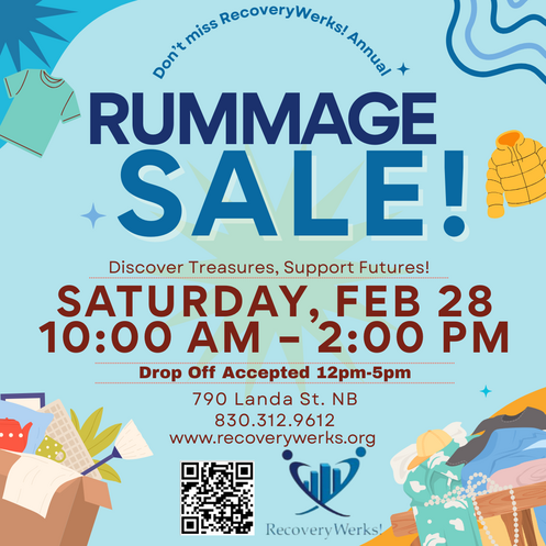 You can help keep recovery thriving in Comal County AND clear out your closets. Donations of gently used items are being accepted now between 12pm - 5pm, Monday through Friday.